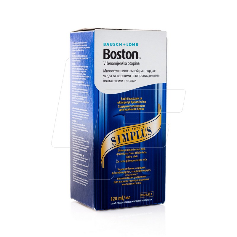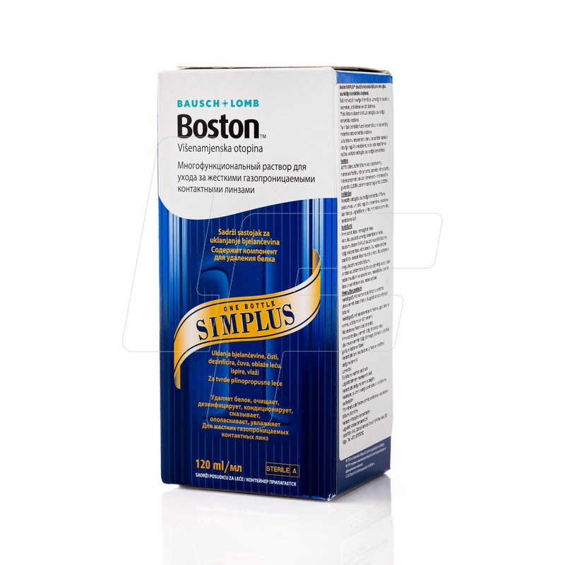 Boston Simplus ir daudzfunkcionāls šķīdums, speciāli izstrādāts cieto (RGP / gāzu caurlaidīgo) kontaktlēcu kopšanai. Tas paredzēts lēcu tīrīšanai, izskalošanai, dezinfekcijai un kondicionēšanai, ātri atbrīvojot virsmas nogulsnējumus un samazinot mikrobioloģisko risku.